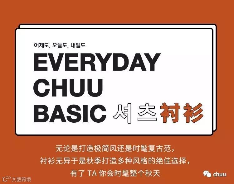 chuu,韩国本土网红潮流时尚品牌。2012年创立于韩国首尔。甜辣,轻运动,高调张扬的自我穿搭方式。