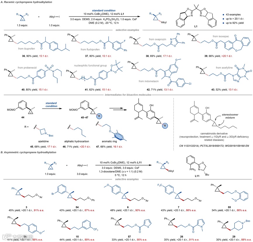 图1、钴催化环丙烯氢烷基化反应