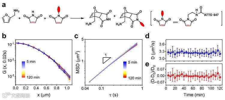 图1. 利用单分子追踪技术(SMT)研究点击反应中反应物的扩散情况。