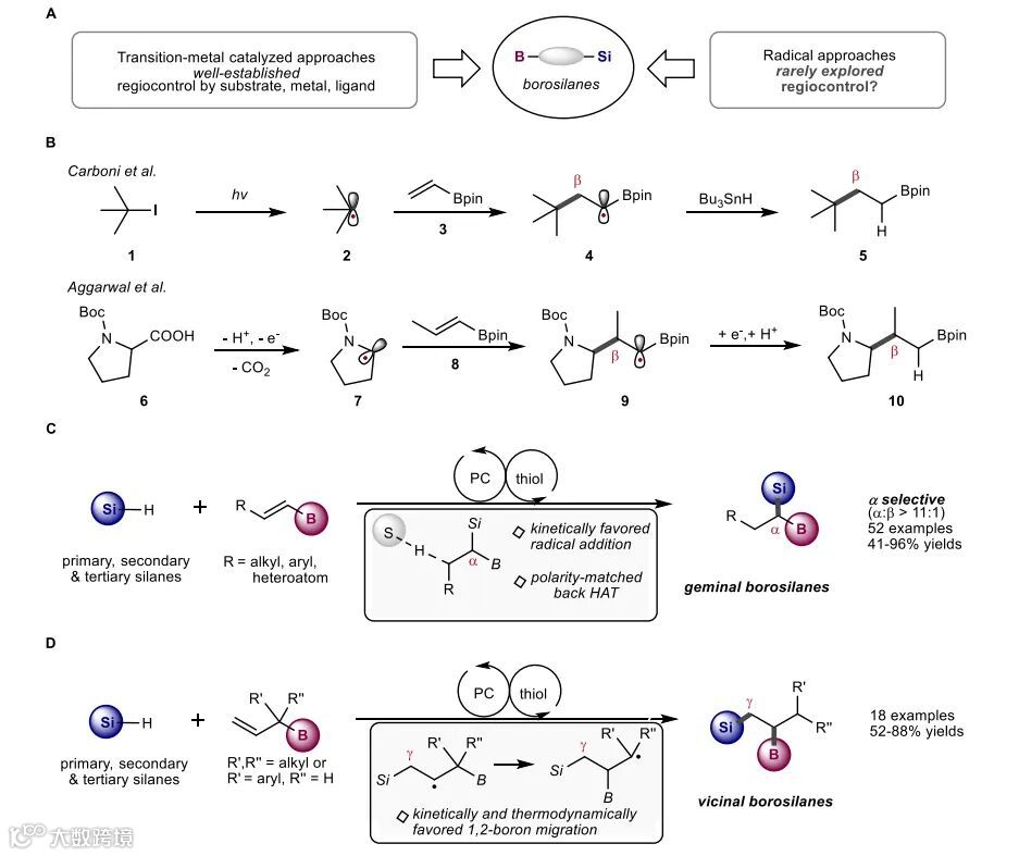 【有机】NUS吴杰团队Nat. Commun.:光催化区域选择性合成偕二、邻二硅硼化合物
