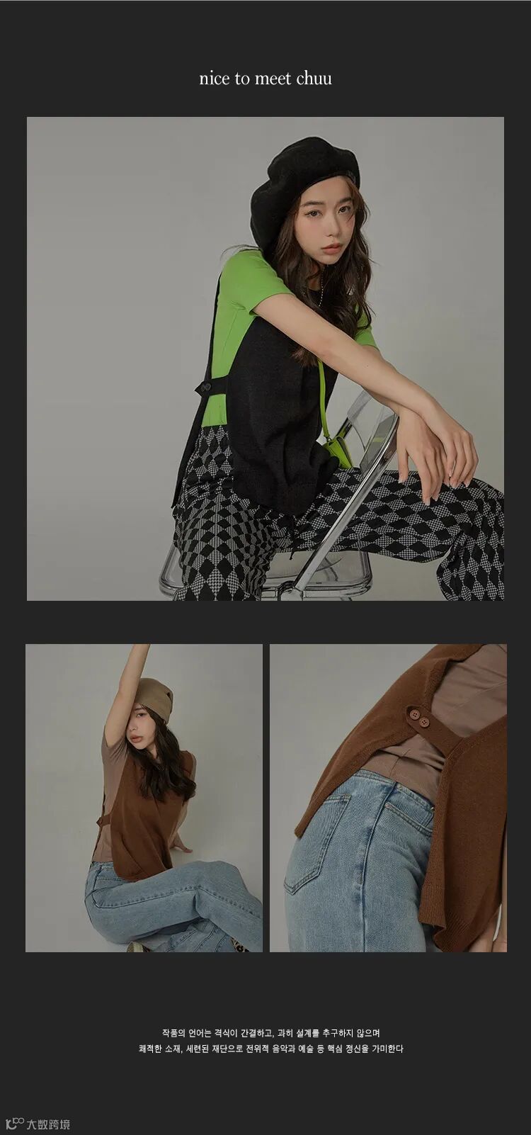 chuu,韩国本土网红潮流时尚品牌。2012年创立于韩国首尔。甜辣,轻运动,高调张扬的自我穿搭方式。
