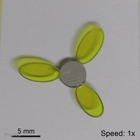 ,无需任何支撑装置,液滴就能驱动三叶旋翼快速转动(视频4)。