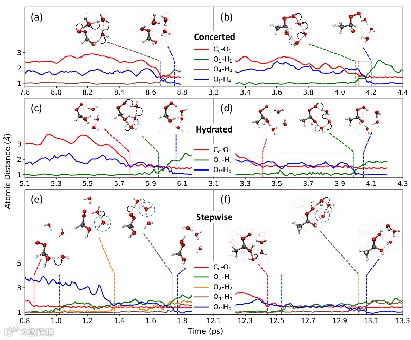 图3. CI分子与水在水-空气界面的反应路径展示