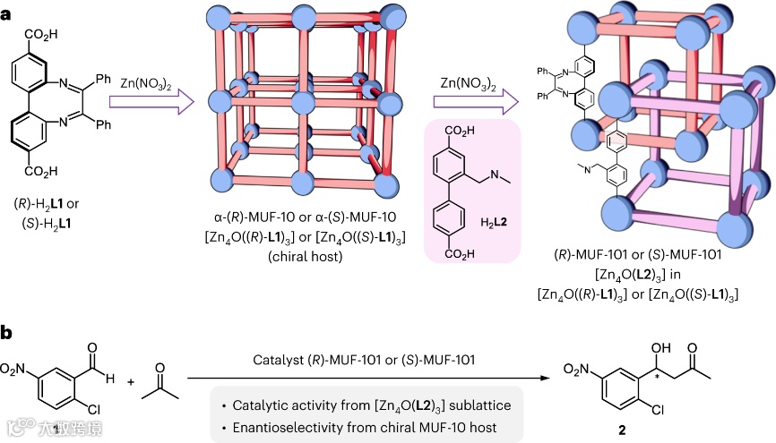 异质互穿MOFs作为非对称催化剂。图片来源: