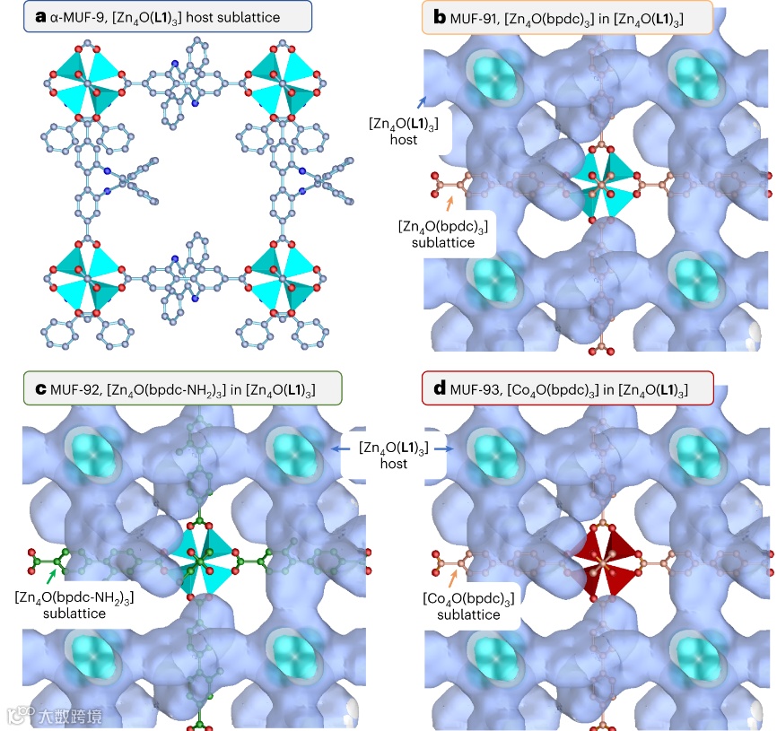 研究者首先以α-MUF-9作为主晶格,这是一种立方体MOF,以