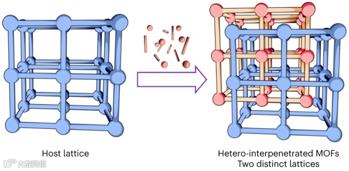 异质互穿MOFs结构示意图。图片来源: