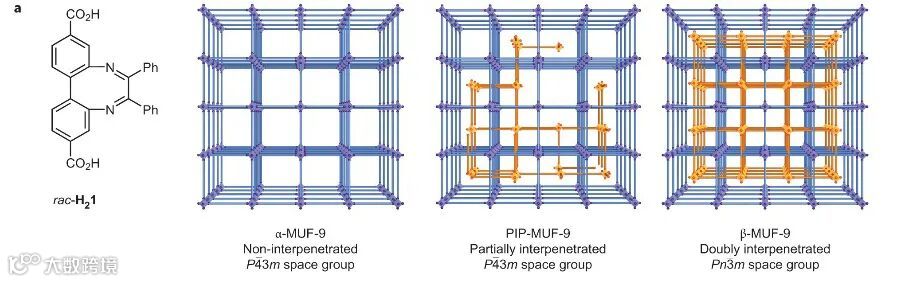 β-MUF-9,同相互穿MOFs。图片来源: