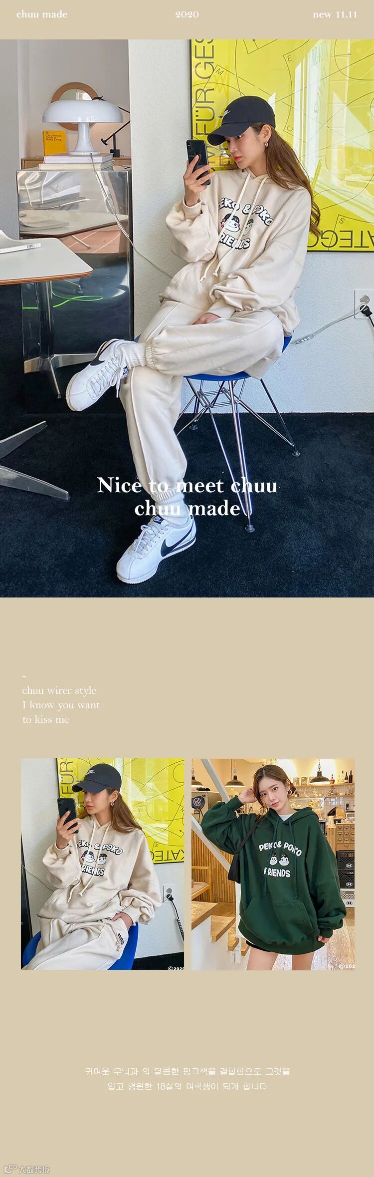 chuu,韩国本土网红潮流时尚品牌。2012年创立于韩国首尔。甜辣,轻运动,高调张扬的自我穿搭方式。