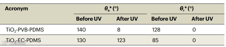 -PVB-PDMS涂层在未经过紫外线照射活化时,其实是疏水的,只有在紫外线照射后才变为亲水性;而Ti