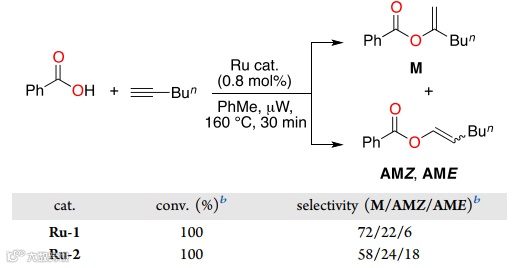 图8. 钌催化炔烃和苯甲酸的反应。图片来源: