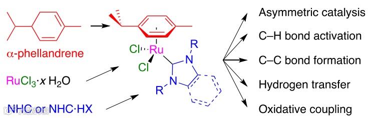 图1. 含NHC配体的钌-芳烃配合物的合成及其催化应用。图片来源:
