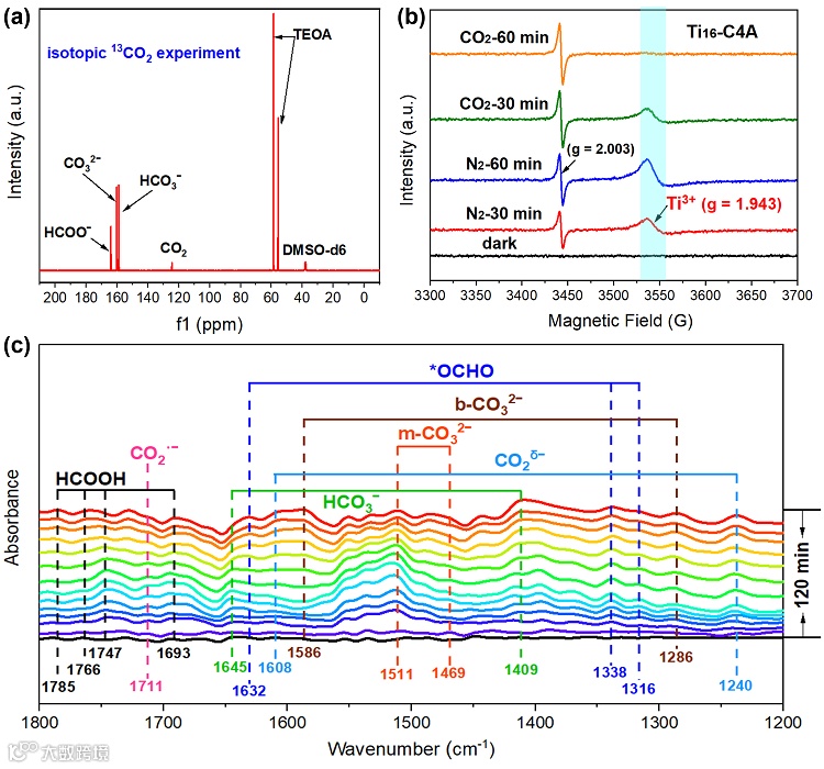 作为反应气氛,163.6 ppm信号峰对应为HCO