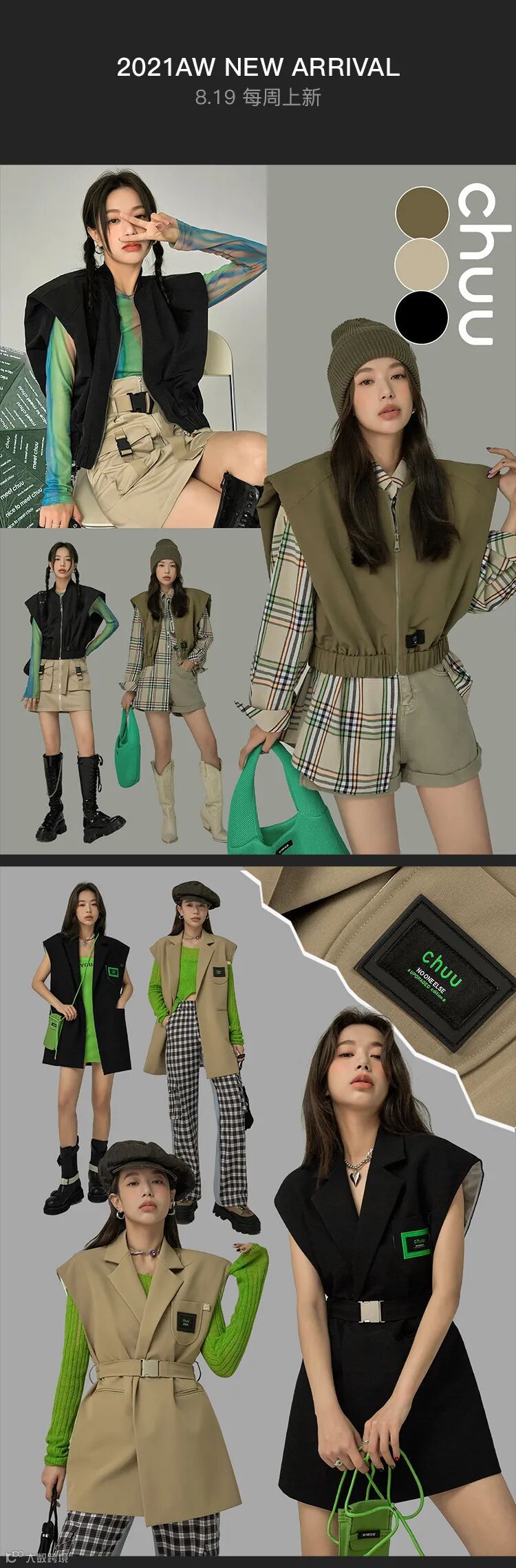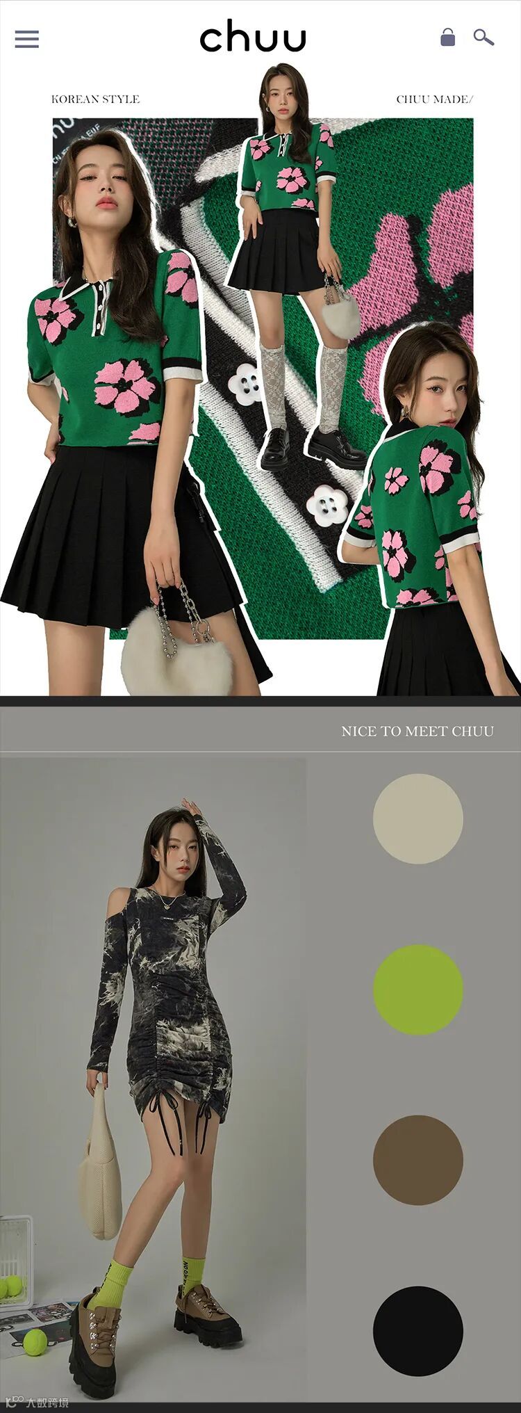 chuu,韩国本土网红潮流时尚品牌。2012年创立于韩国首尔。甜辣,轻运动,高调张扬的自我穿搭方式。