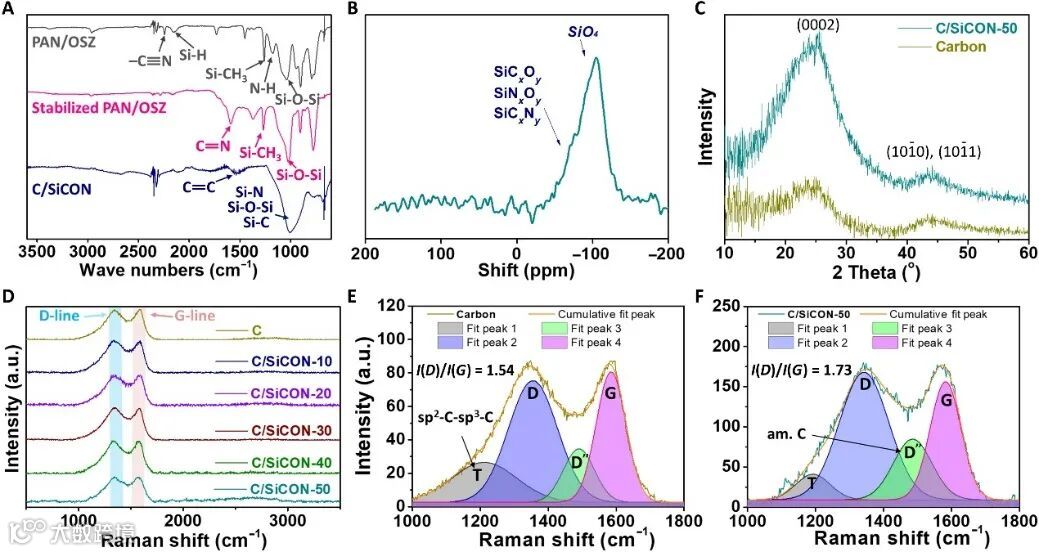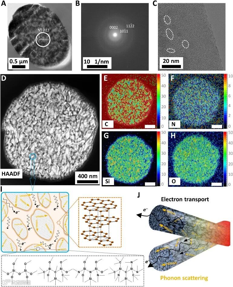 C/SiCON纤维的纳米结构及元素分析。图片来源:Sci. Adv.