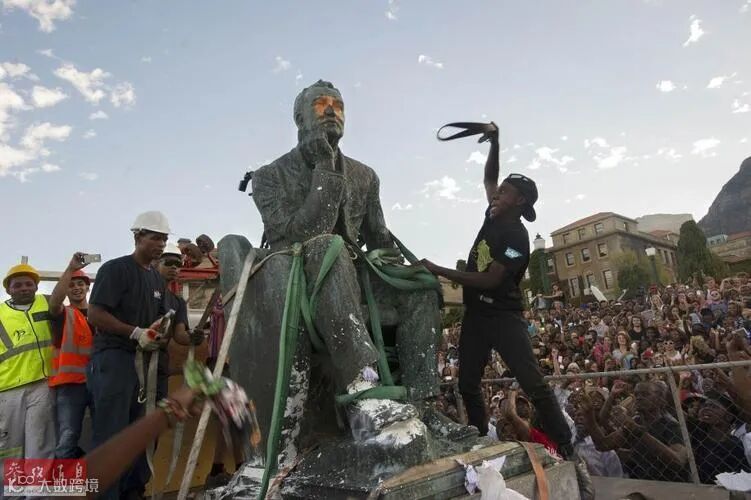 拆除南非开普敦大学校园内英国殖民者Cecil John Rhodes的雕像。图片来源于网络