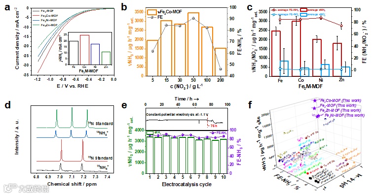M-MOFs的硝酸还原性能。