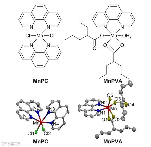 图1. MnPC和MnPVA的化学结构和晶体结构
