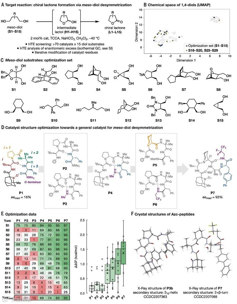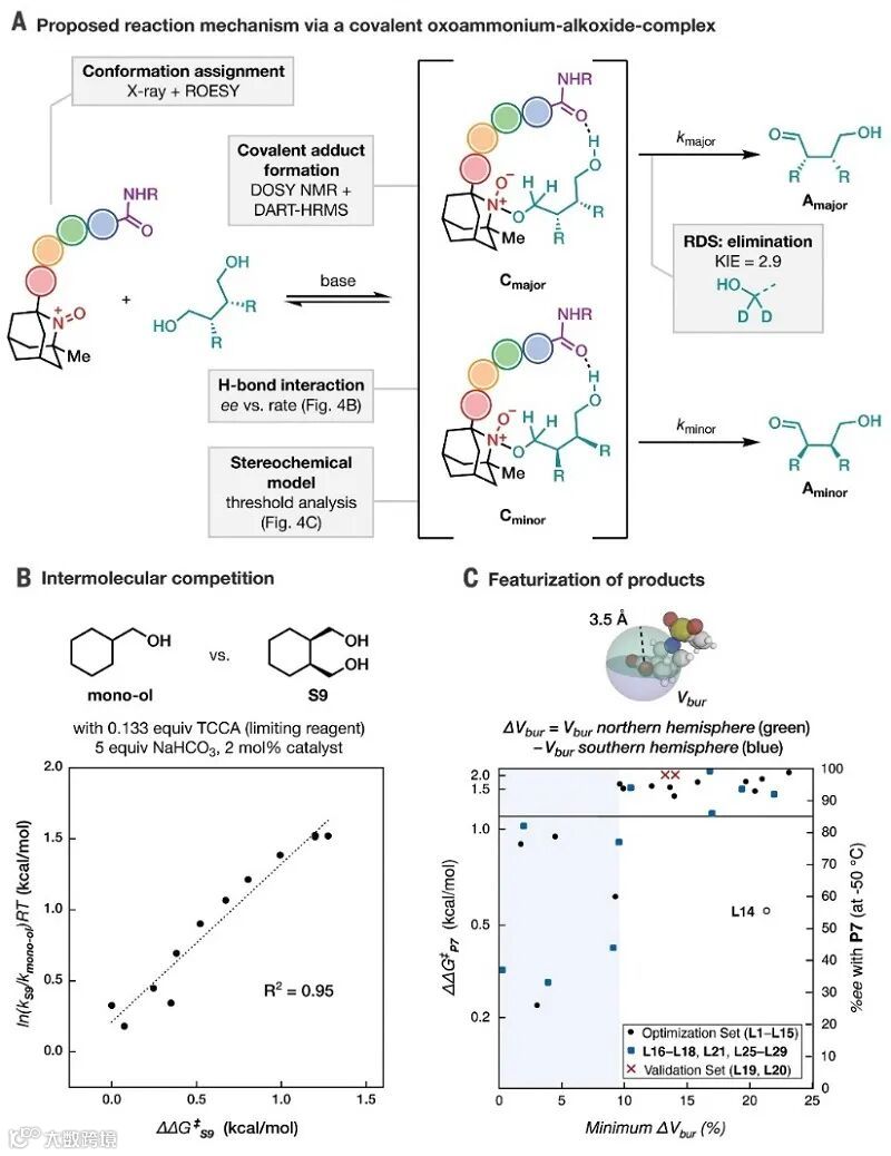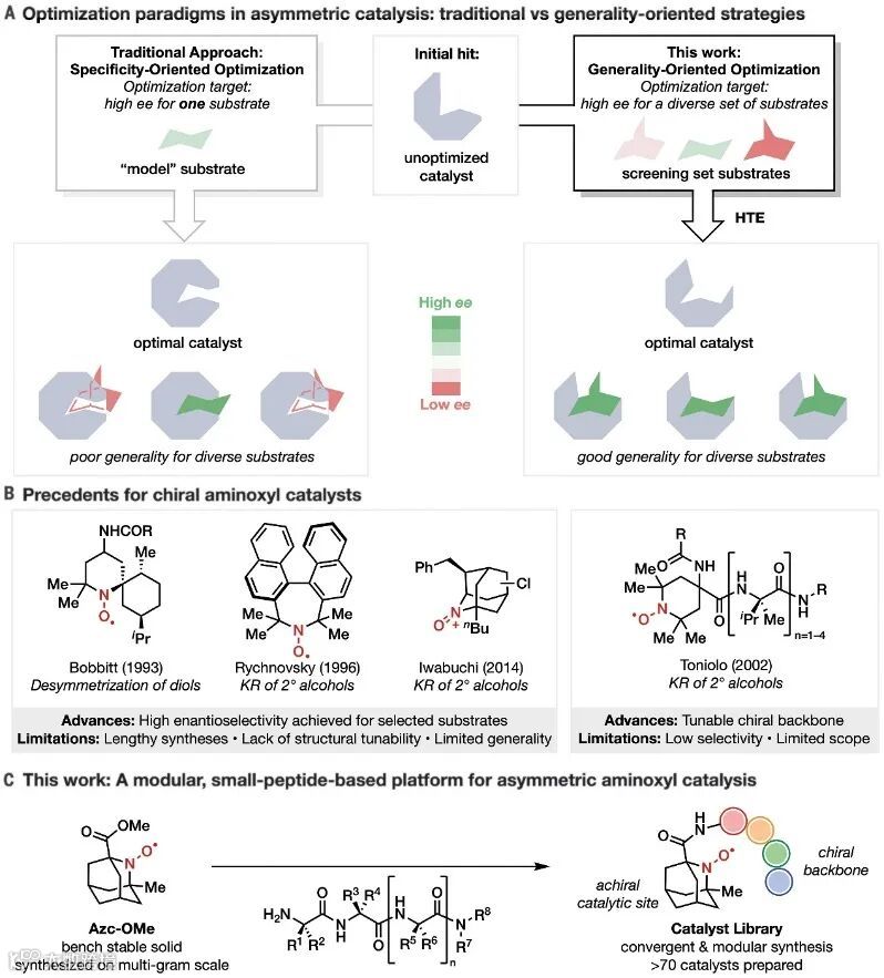 图4. 机理研究。图片来源:Science 总结 本文研究团队报道了一种通用性导向的催化剂非传统优化策略,并成功地用于二元醇氧化去对称化反应的N-O自由基催化优化。该策略主要通过一组底物而非单一模型底物的筛选来进行预测,所得的通用催化剂可实现二元醇转化的高选择性、高活性和广泛的底物兼容性。