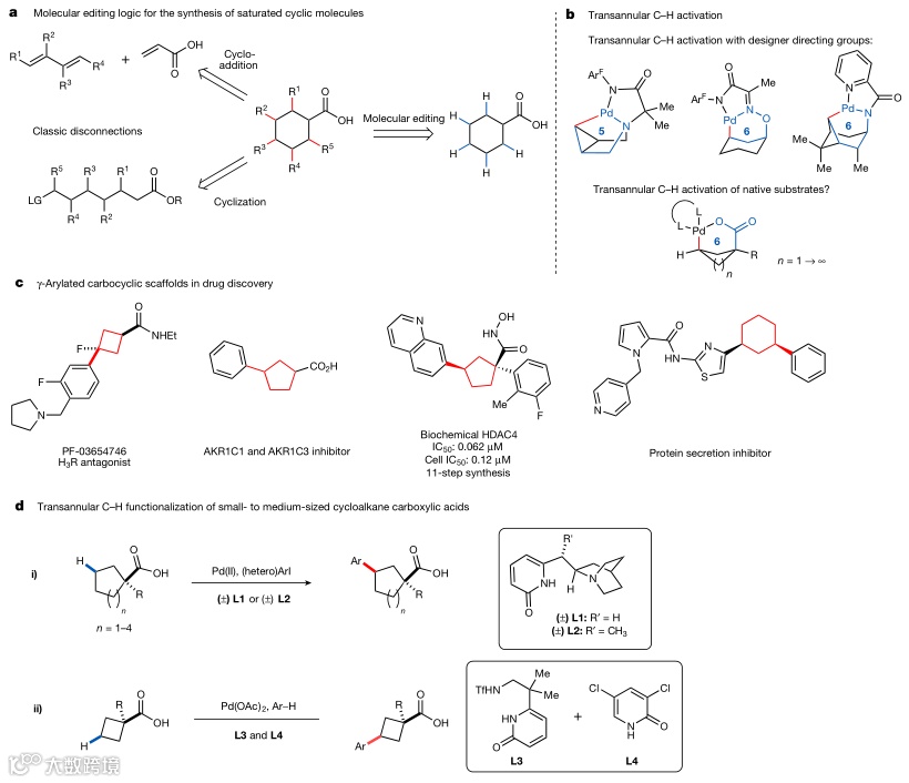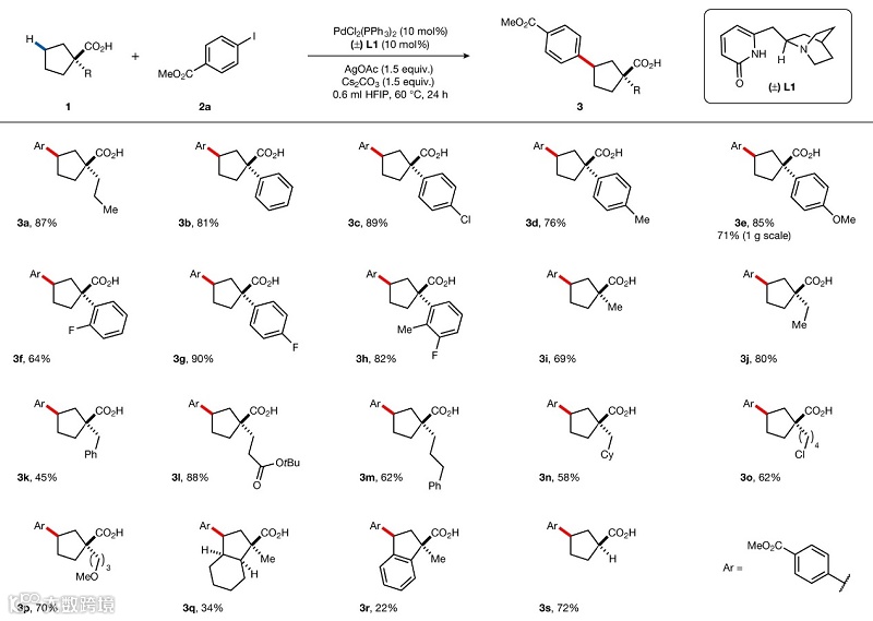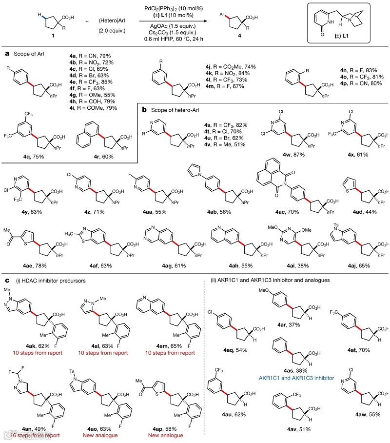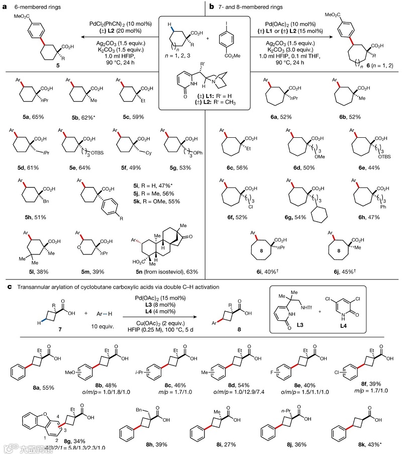图4. 环烷烃羧酸的跨环C-H键芳基化。图片来源:Nature