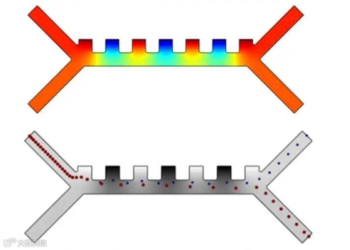 图 微流控芯片内部的虚拟流体通道和数值模拟
