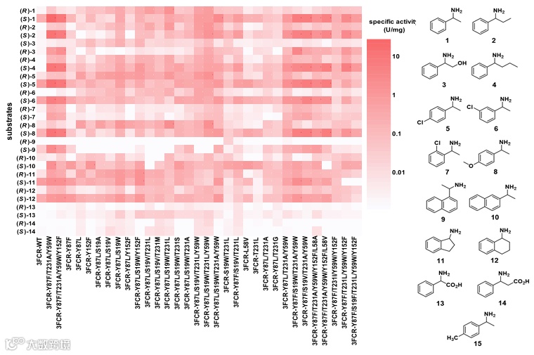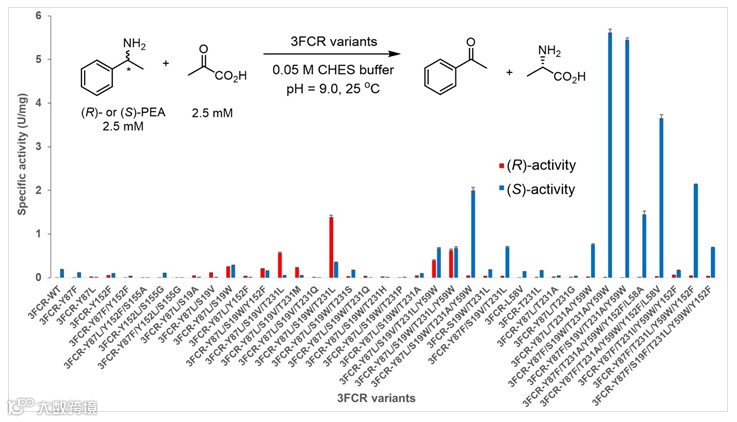 图3. 不同突变体催化不同底物反应的比活性