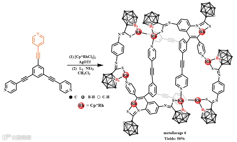 导读:复旦大学金国新教授团队描述了利用B-C偶联反应和碳硼烷“笼行走”策略与配位驱动的自组装结合构筑超分子笼的方法。