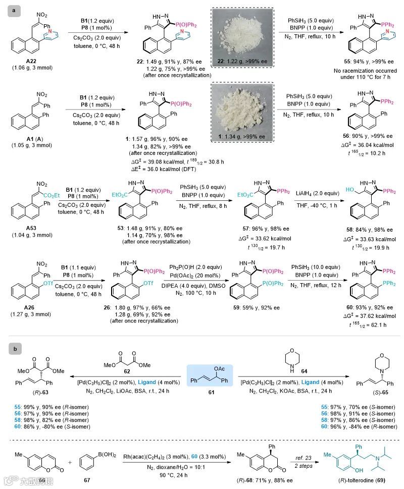 图3. 克级反应、产物衍生及其在不对称催化中的应用。图片来源: