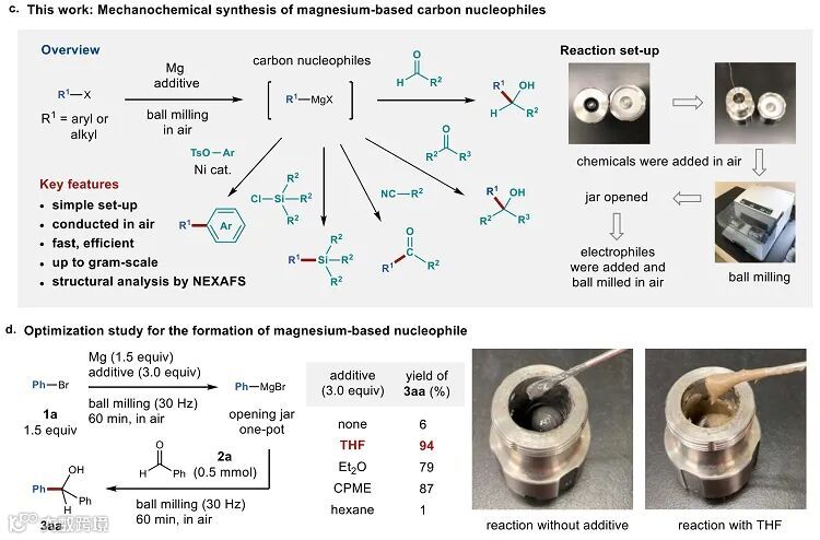 机械化学合成格氏试剂及其在有机合成中的应用。图片来源: