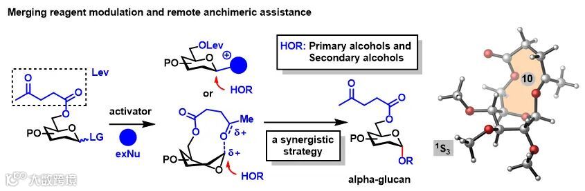 图3. 融合试剂调控和Lev远程参与的1,2-顺式葡萄糖糖苷化反应新策略