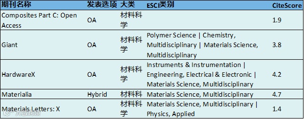 2023爱思唯尔将获首个影响因子的物质科学期刊完整列表