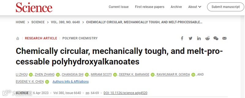 Eugene Y. X. Chen团队Science:可熔融加工、韧性高、可化学回收的生物塑料PHA