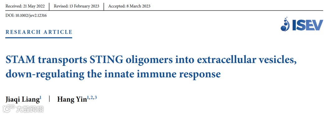 2023年3月以来,尹航教授在国际细胞外囊泡协会(International Society of Extracellular Vesicle)旗舰期刊Journal of Extracellular Vesicles(5-year IF =22.603)上连续发表两篇文章,分别报道EVs在LPS/TLR4和cGAS/STING信号通路中的调控机制,提供了脂质和蛋白质调控EV生成的新机制,大大扩展了我们对EVs参与的天然免疫信号传递过程的了解。