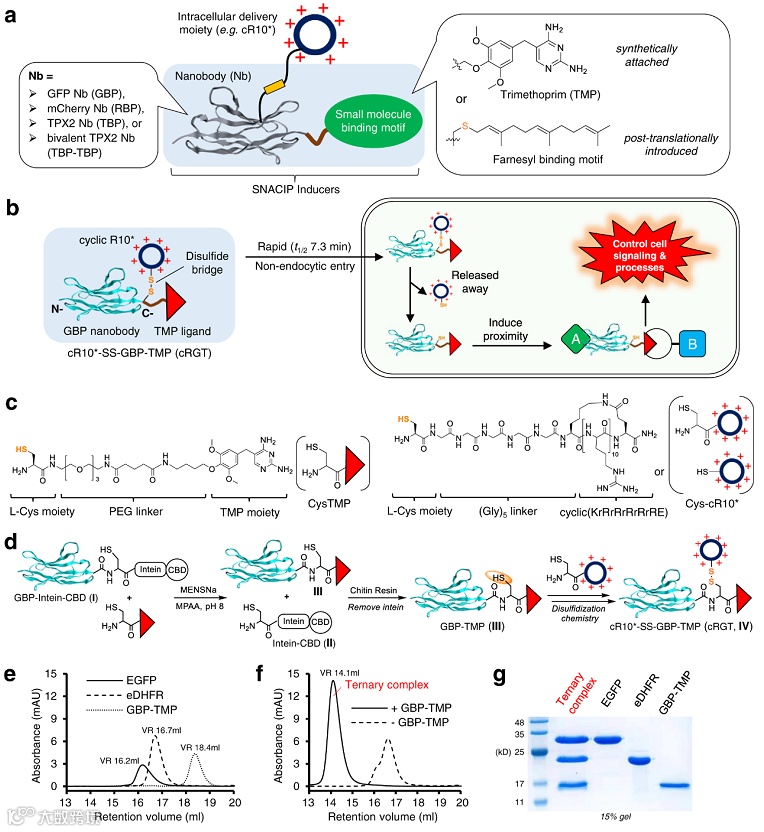 结合CIP和纳米抗体化学工程化技术以及环状跨膜肽非内吞递送,将三种前沿技术相融合而开发出SNACIP临近诱导体系。