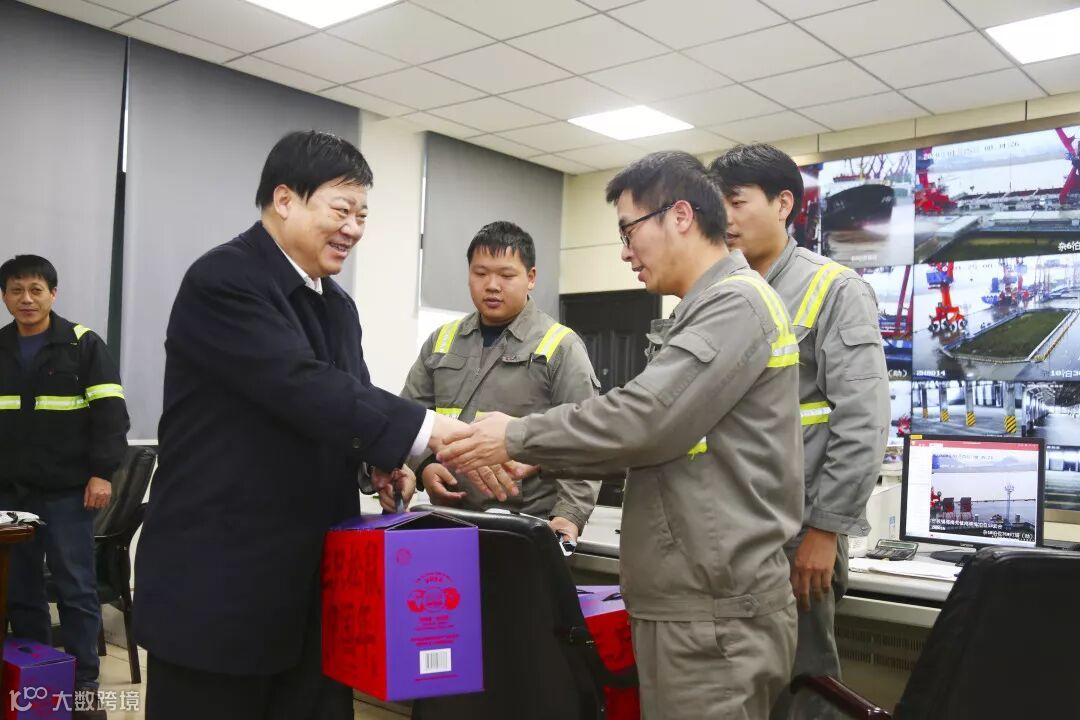 10时50分,毛剑宏一行来到宁波舟山港调度指挥中心,向值班人员送上新春祝福,了解了宁波舟山港大年初一的港口生产情况,嘱咐值班人员要防护好、过好年。