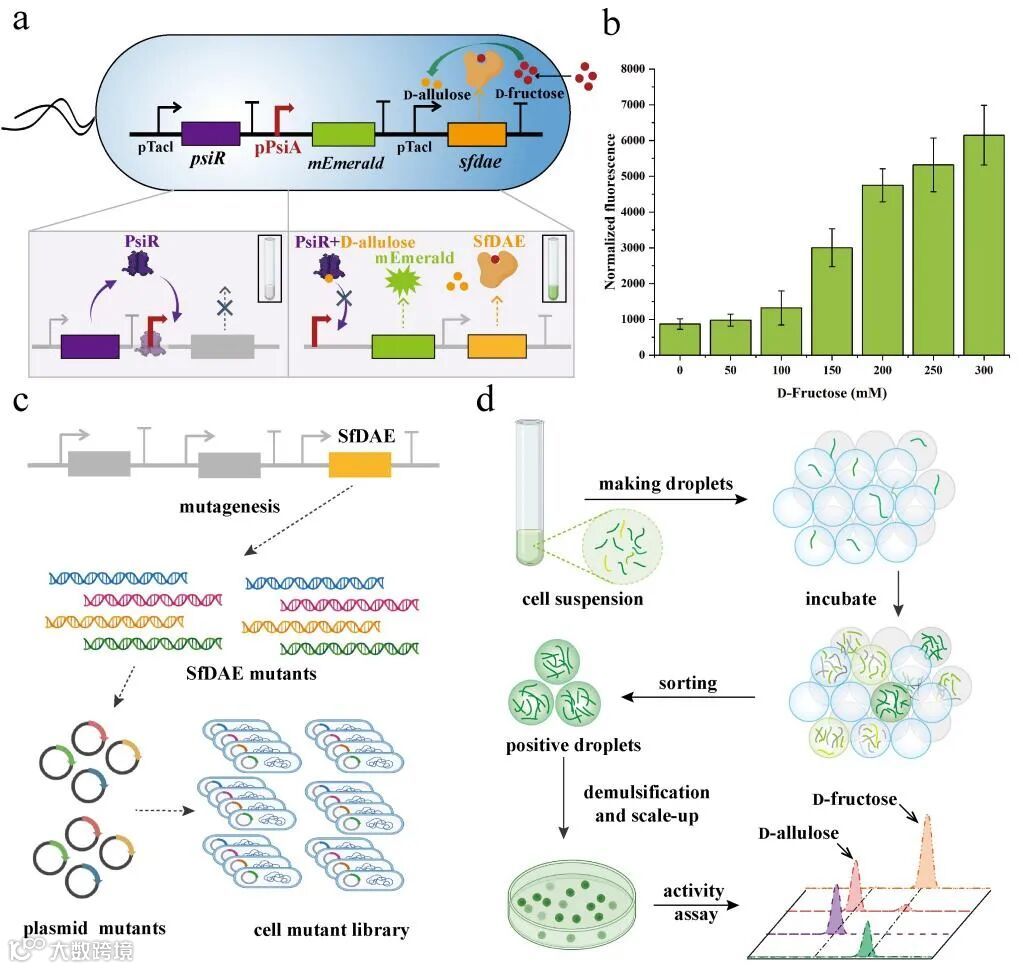 导读:天津科技大学路福平教授、秦慧民教授研究团队设计并优化了基于生物传感器的微液滴超高通量筛选平台,结合结构指导的理性设计及定向进化,实现了合成D-阿洛酮糖的差向异构酶的高效催化。