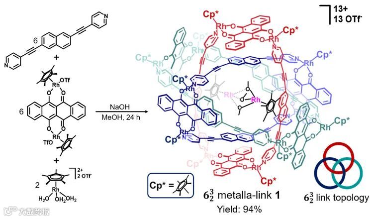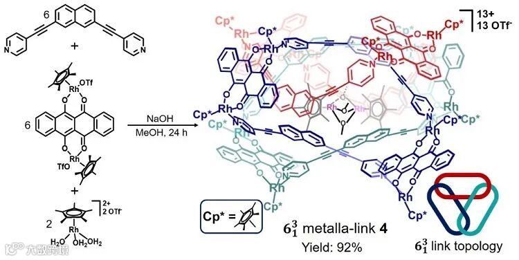教授课题组开发的以半夹心型铑(III)或铱(III)配合物作为金属角,结合具有不同尺寸特点的多齿配体的合成策略,先后实现了一系列包括有机金属Borromean环、三叶结、