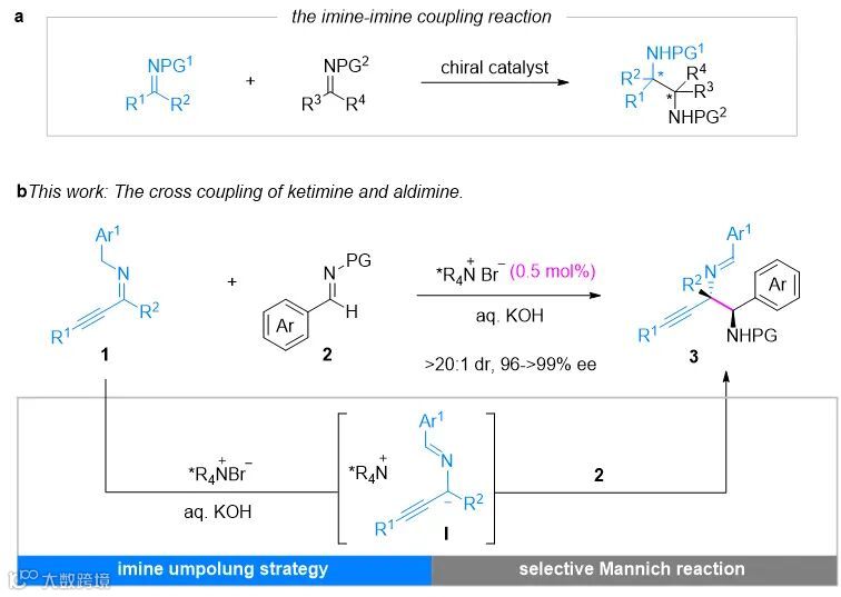 图1. 催化不对称亚胺偶联反应和作者设想