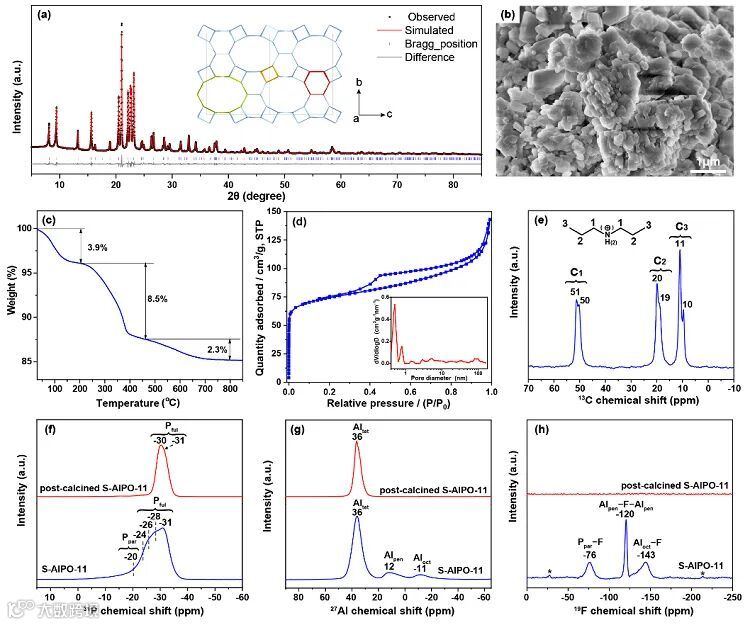 图1. 固相合成AlPO-11的产物表征。