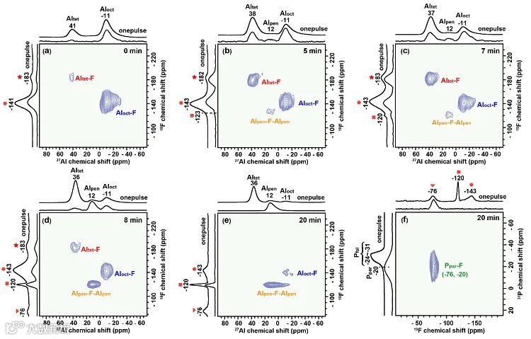 -F,揭示了F在晶化过程中逐步从铝物种上转移到P原子上的演化过程。以上F物种的变化说明,晶化反应由前驱体中的共价连接的F物种驱动。