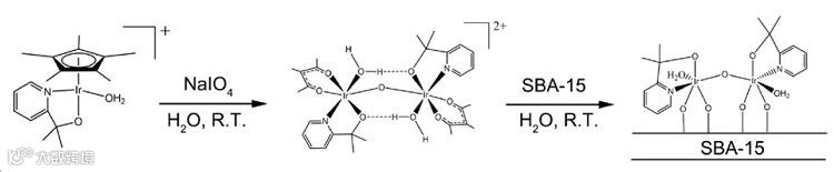 将铱配合物锚定于介孔二氧化硅(SBA-15)的催化剂合成方法,实现了温和条件下的甲烷直接氧化,并且能够通过改变铱的氧化价态,调控甲醇和乙酸的选择性生成。