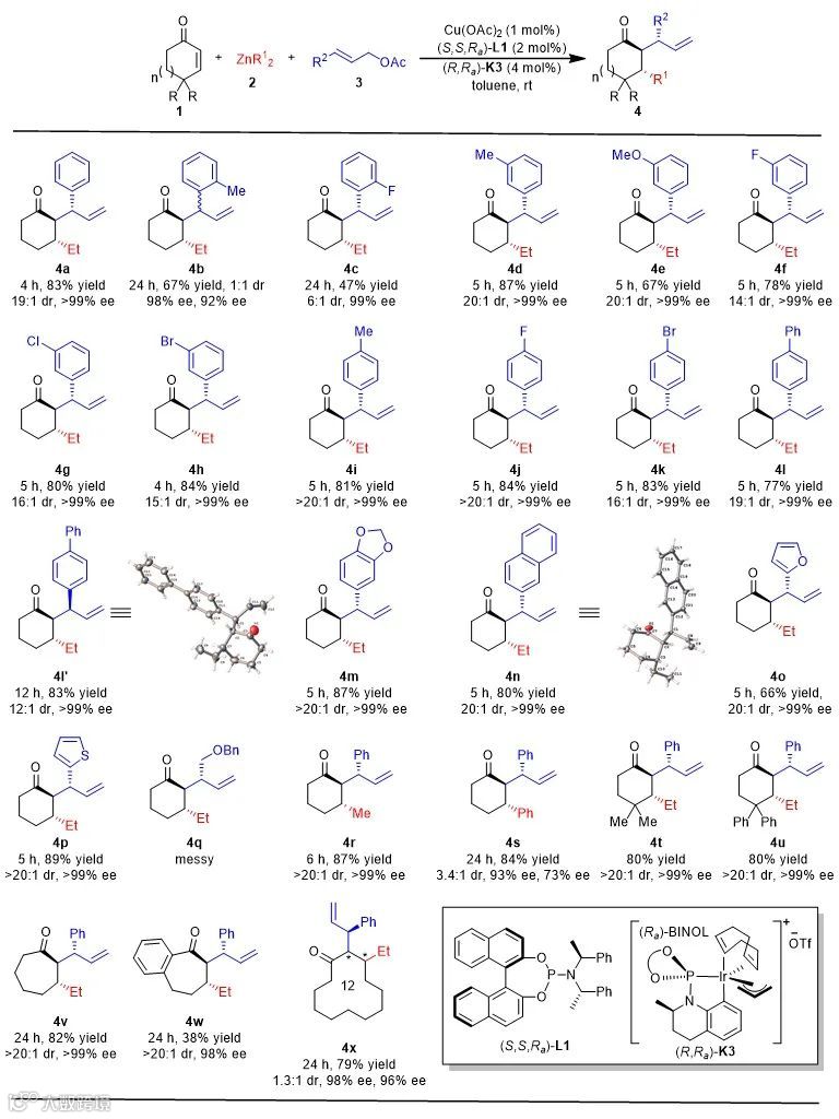 导读:中国科学院上海有机化学研究所游书力研究员团队将铜催化的不对称共轭加成反应与铱催化的不对称烯丙基取代反应相结合,成功构建了含多个连续手性中心的酮类化合物。