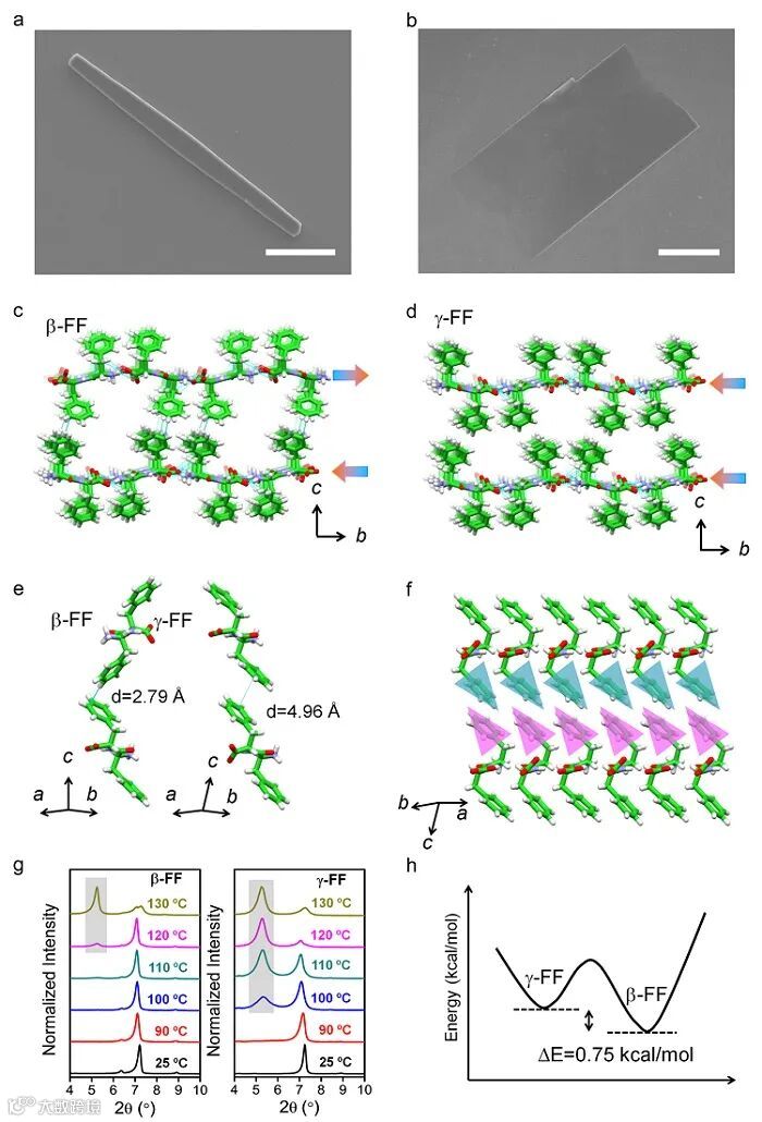 研究发现,FF可自组装形成层状晶体(β-FF)。该晶体中,相邻分子层堆积方向相反,具有旋转对称特征。FF在C