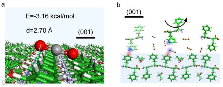 参与FF组装时,其将通过电荷作用吸附在 FF单分子层表面,覆盖原本的π-π堆积的相互作用位点,使游离的FF分子能够吸附在空间排列上更有利的不对称位点上,从而引起晶体结构的对称性破缺。
