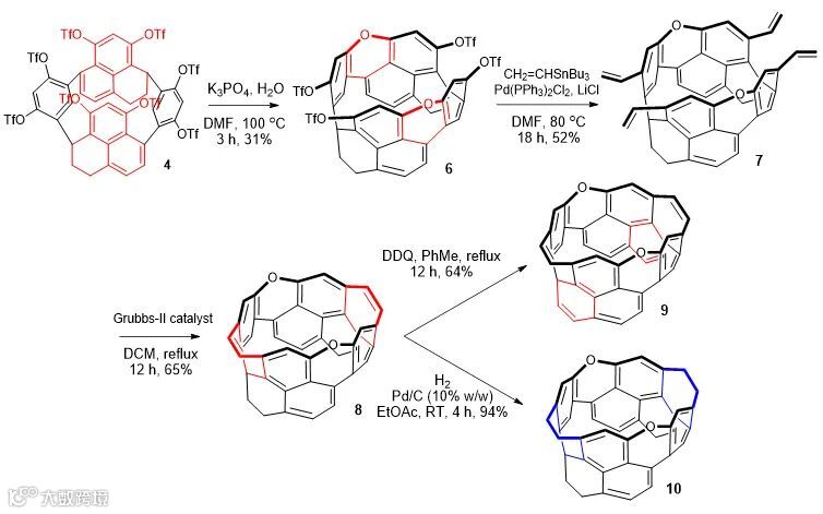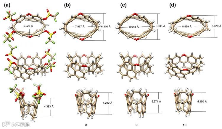 拥有着相似的高张力带状结构,这些化合物的椭圆分子形状源自于联结共轭π体系的两个