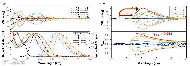 随后该团队对该系列分子的光物理和手性光学性能进行了研究。在甲苯溶剂中,化合物