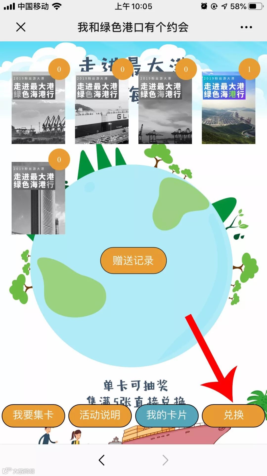 2.集齐“绿”“色”“海”“港”“行”5张卡片,可点击页面右下角“兑换”按钮,进入兑换。(兑换名额20个)