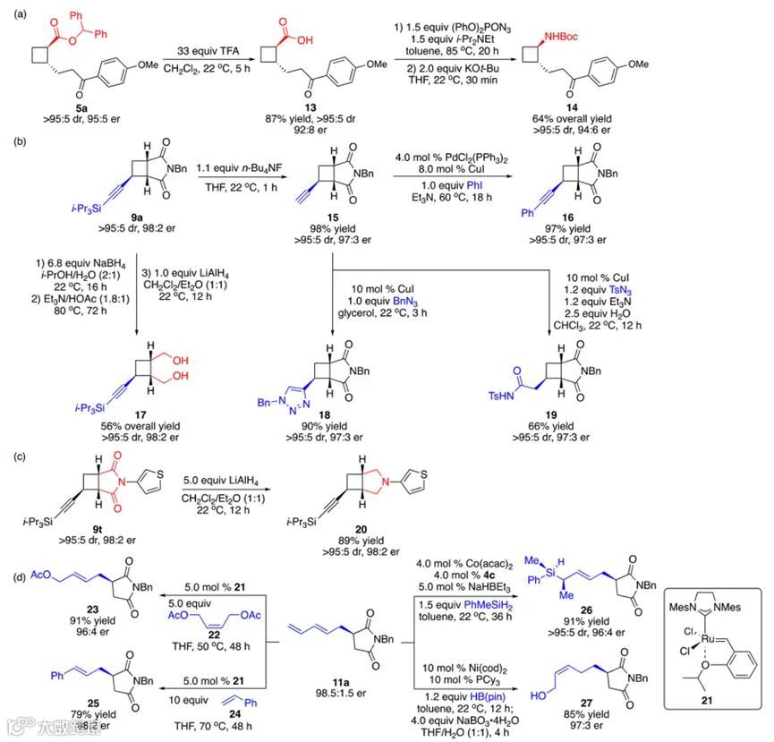 作者对手性环丁烷产物进行了丰富的官能团化(图8)。