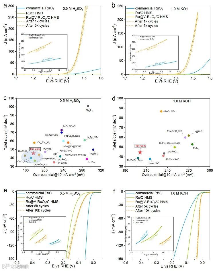 /C HMS核壳结构在酸性和碱性溶液中均表现出优异的OER(176/201 mV@10 mA c