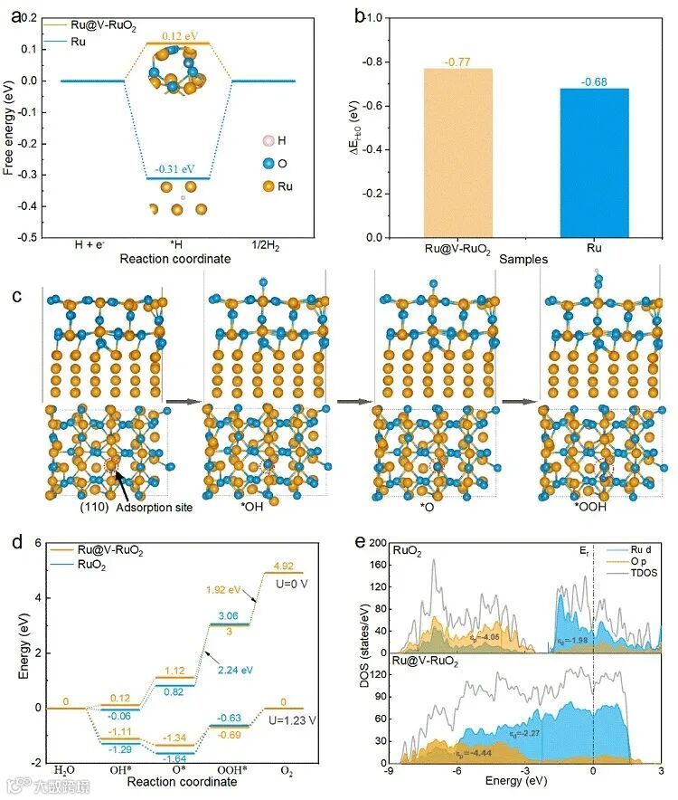)活性以及循环稳定性。密度泛函理论计算表明,Ru@V-Ru
