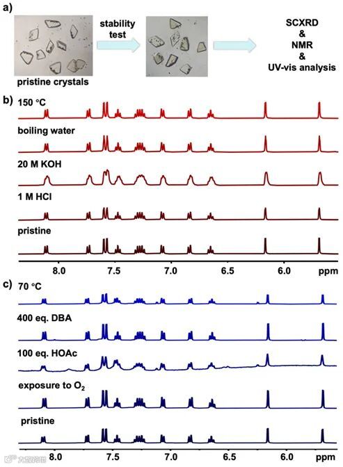 后,仍然适用于单晶X-射线体衍射分析。更有趣的是,核磁和紫外-可见吸收光谱分析表明,向 Cu8 的氘代二氯甲烷溶液中添加100当量乙酸、160当量三乙胺或者400当量二丁胺都不会引起结构分解。